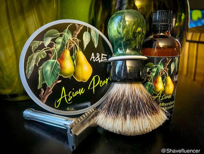 The is such a fun and fruit forward scent profile. The Pear note has just the right amount of sweetness and depth. This is one of those soaps that makes the ritual of wet shaving so worth the experience. Its a sensory delight. A must have in your A&E collection.