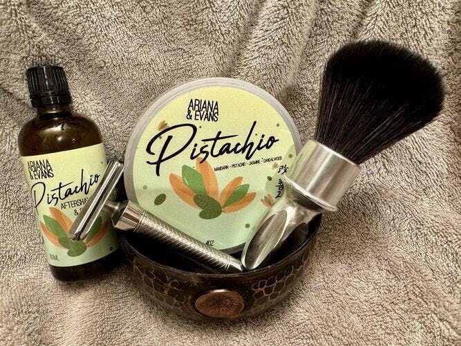Pistachio shaving soap has quickly become one of my go to soaps. It smells nutty and rich but never overwhelming. The lather is super creamy and gives amazing glideit just feels really smooth on the skin. And after shaving, my face feels soft and hydrated every time. If you want something a bit unique that performs great, this ones a winner.