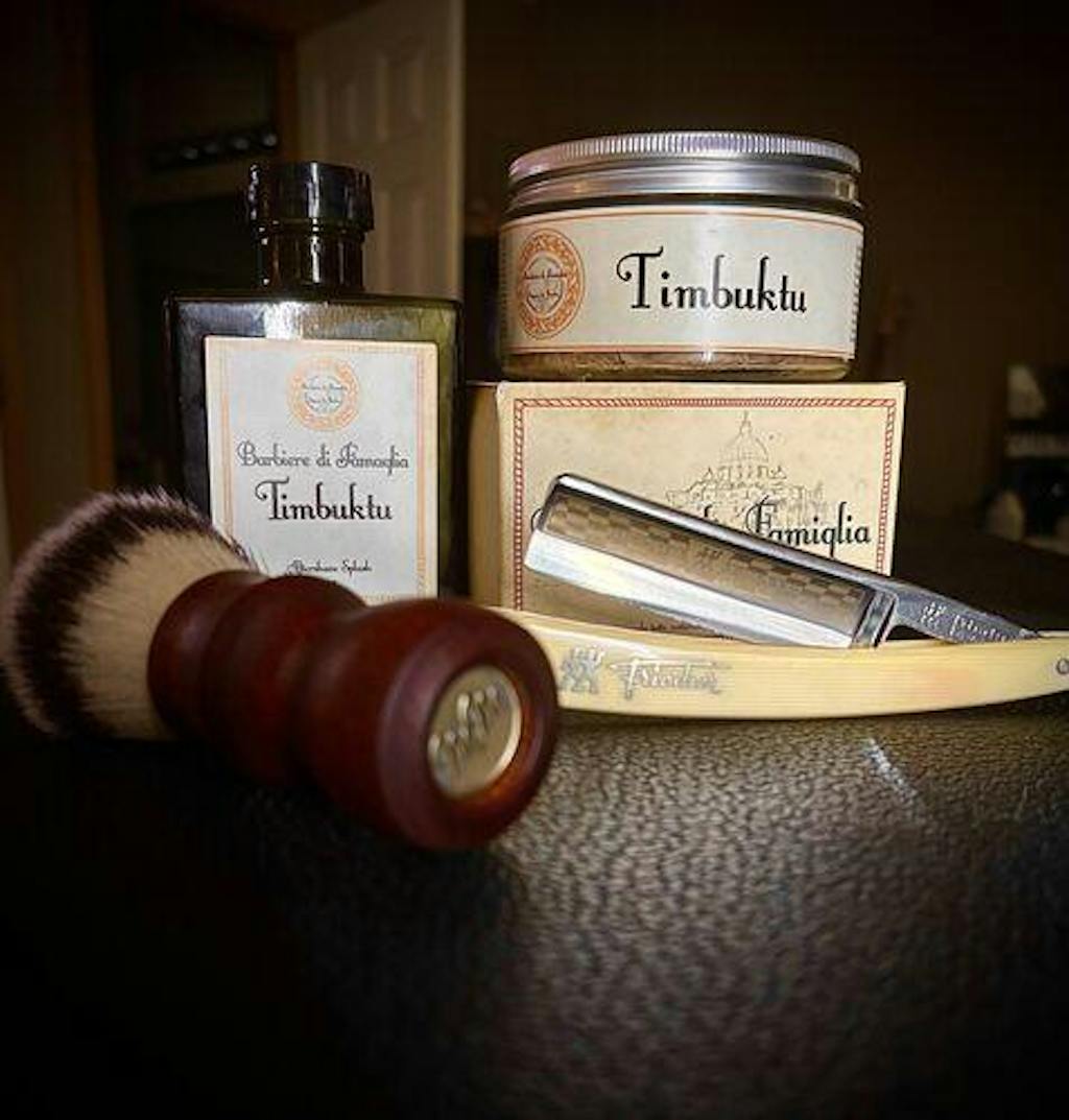 Timbuktu is presented in a luxurious glass jar with 4 ounces of soap